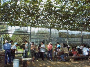 | 藤沢にある弁慶果樹園(観光果樹園)の ぶどう棚の下で、夏の終わりのひととき、 大勢の子供や大人が、心のこもった、 手作り、ふれあい体験をしました。 | ||